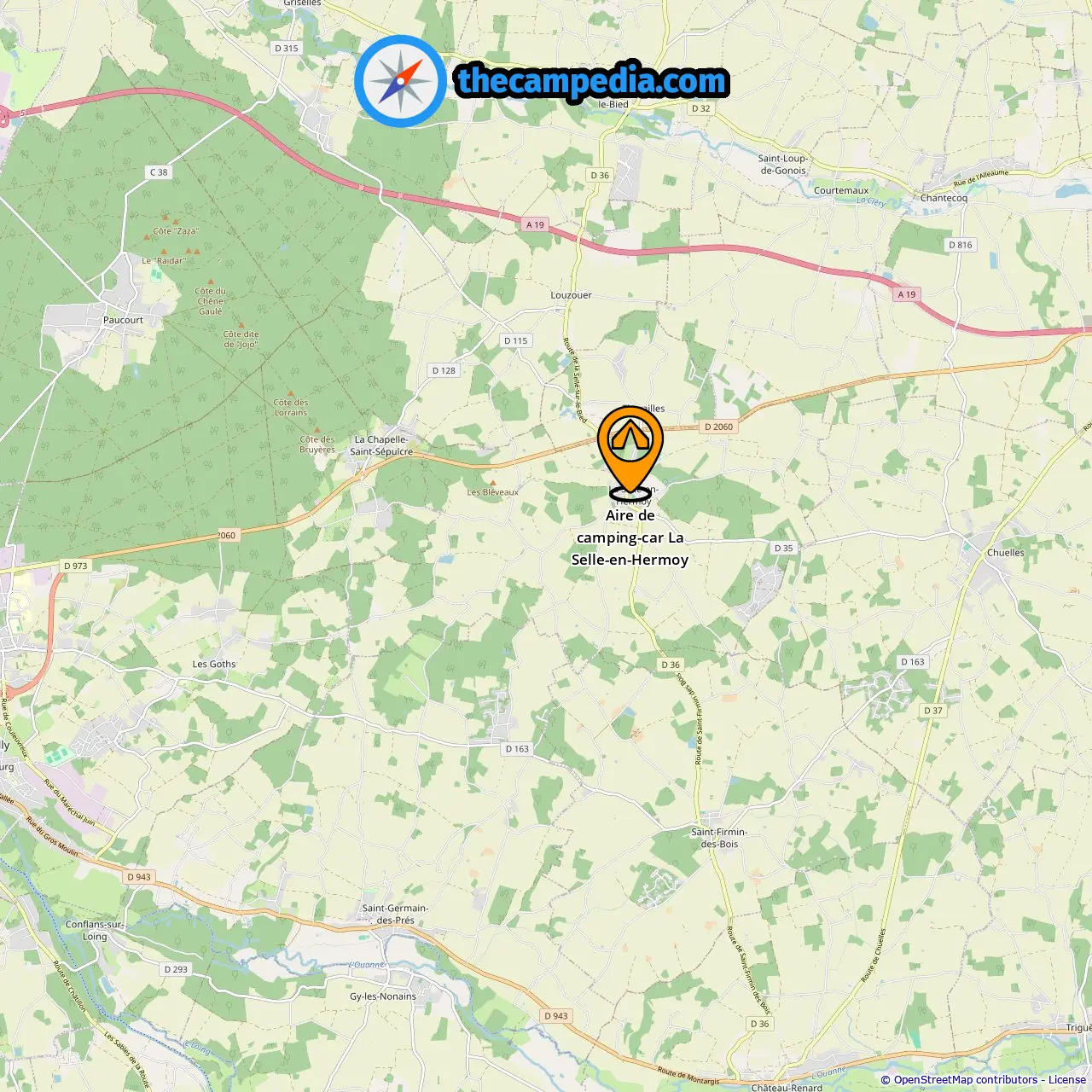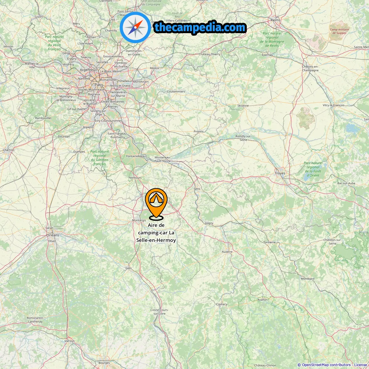 Ort von Aire de camping-car La Selle-en-Hermoy