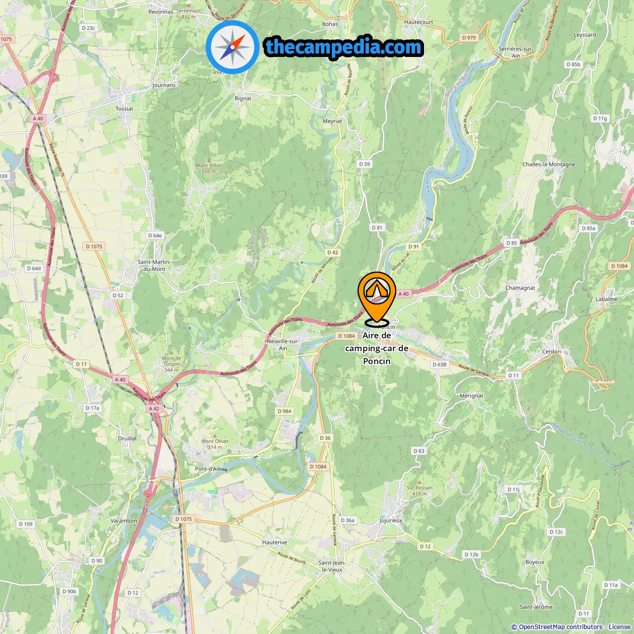 Aire de camping-car de Poncin, Poncin, France