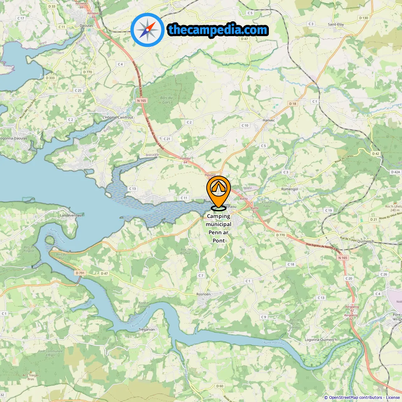 Location of Camping municipal Penn ar Pont