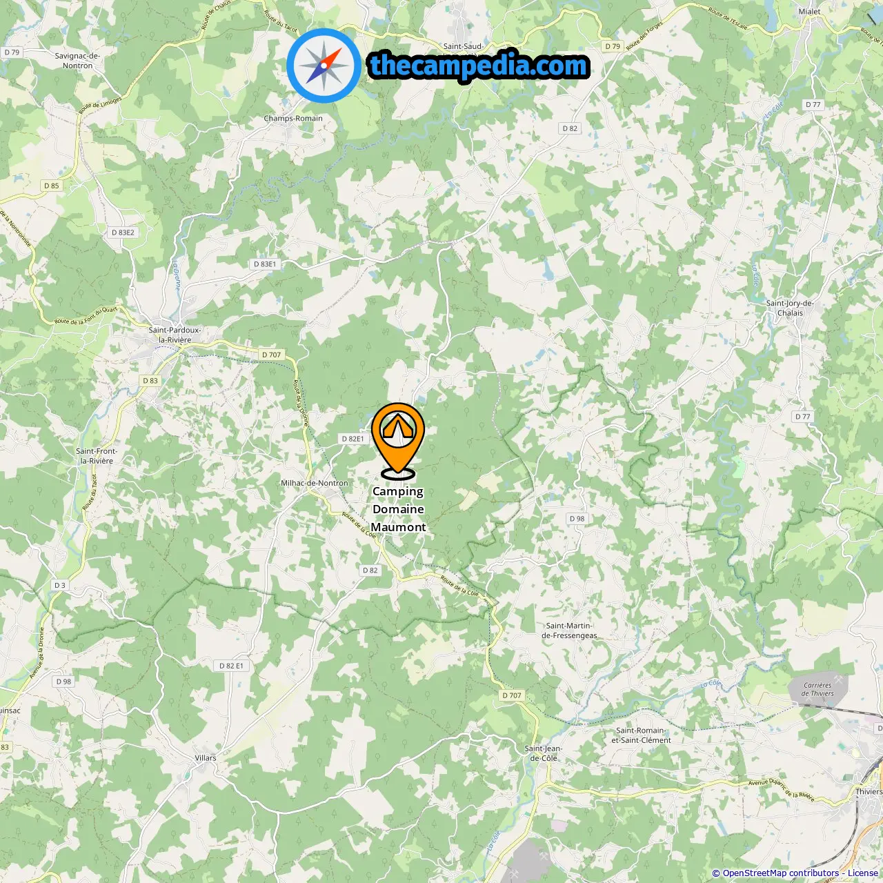 Find campsites in these cities near Milhac-De-Nontron