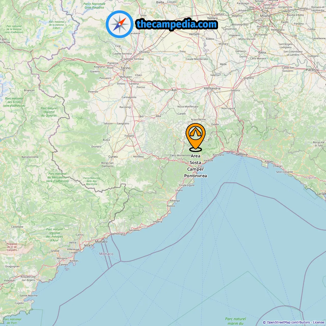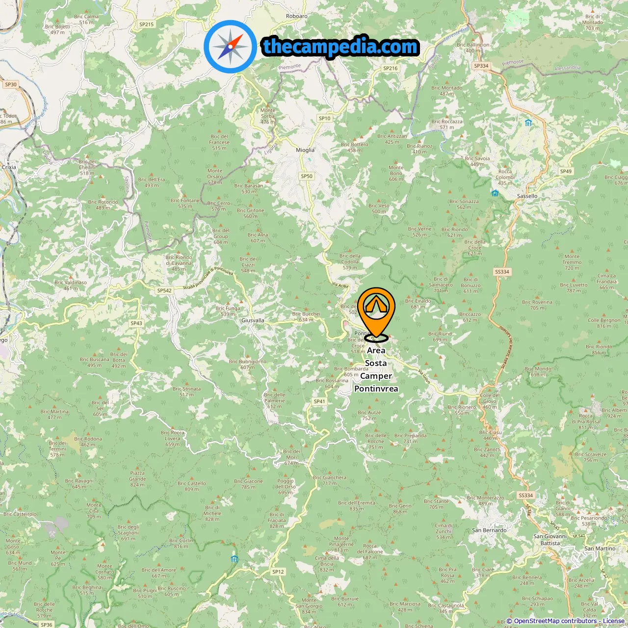 Location of Area Sosta Camper Pontinvrea