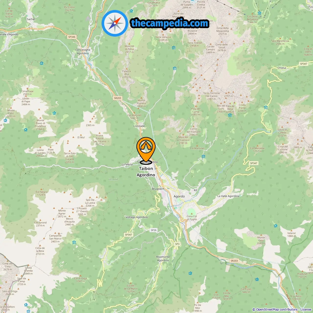 Distance from the campsite to Taibon Agordino: 0.08 mi