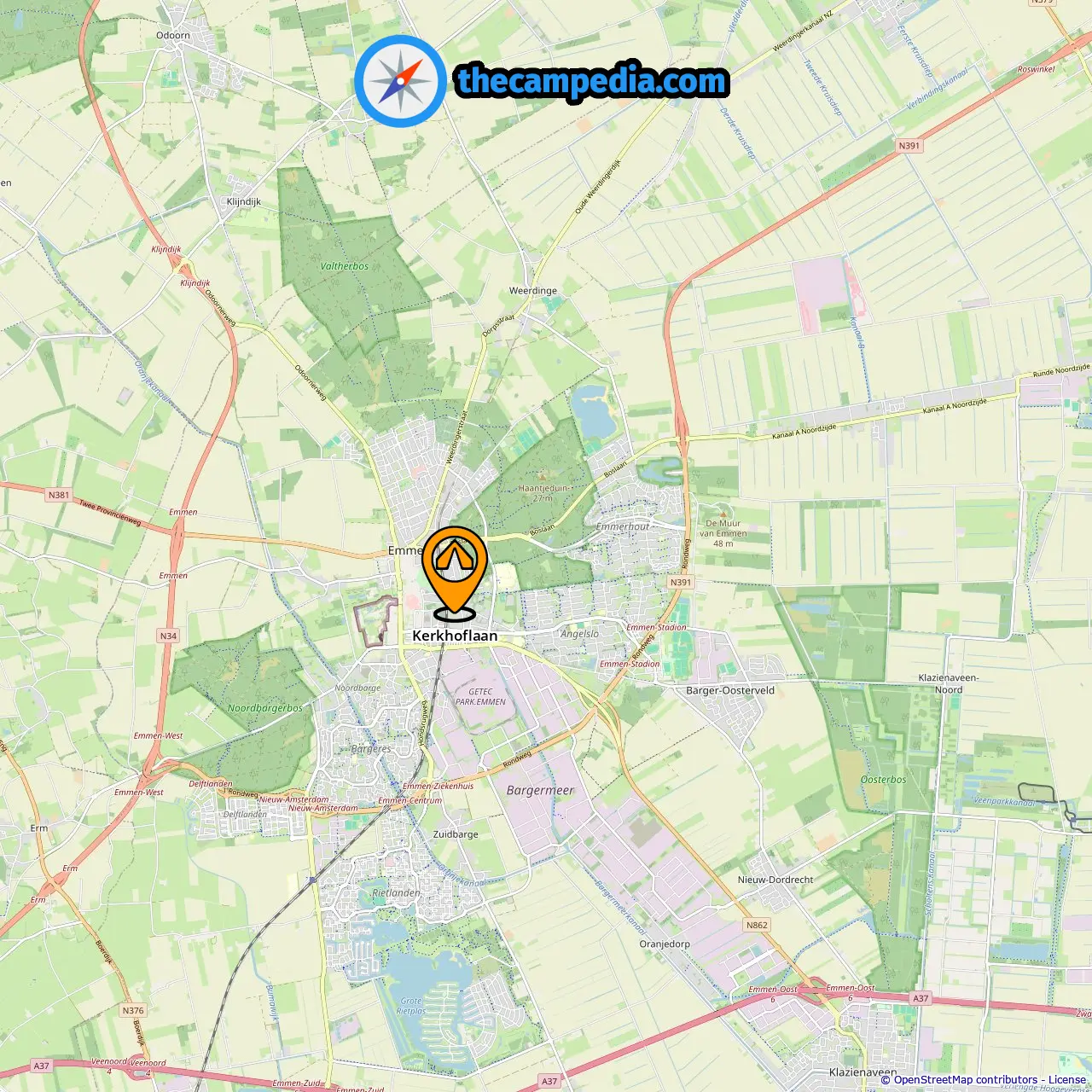 Distance from the campsite to Emmen: 0.6 mi