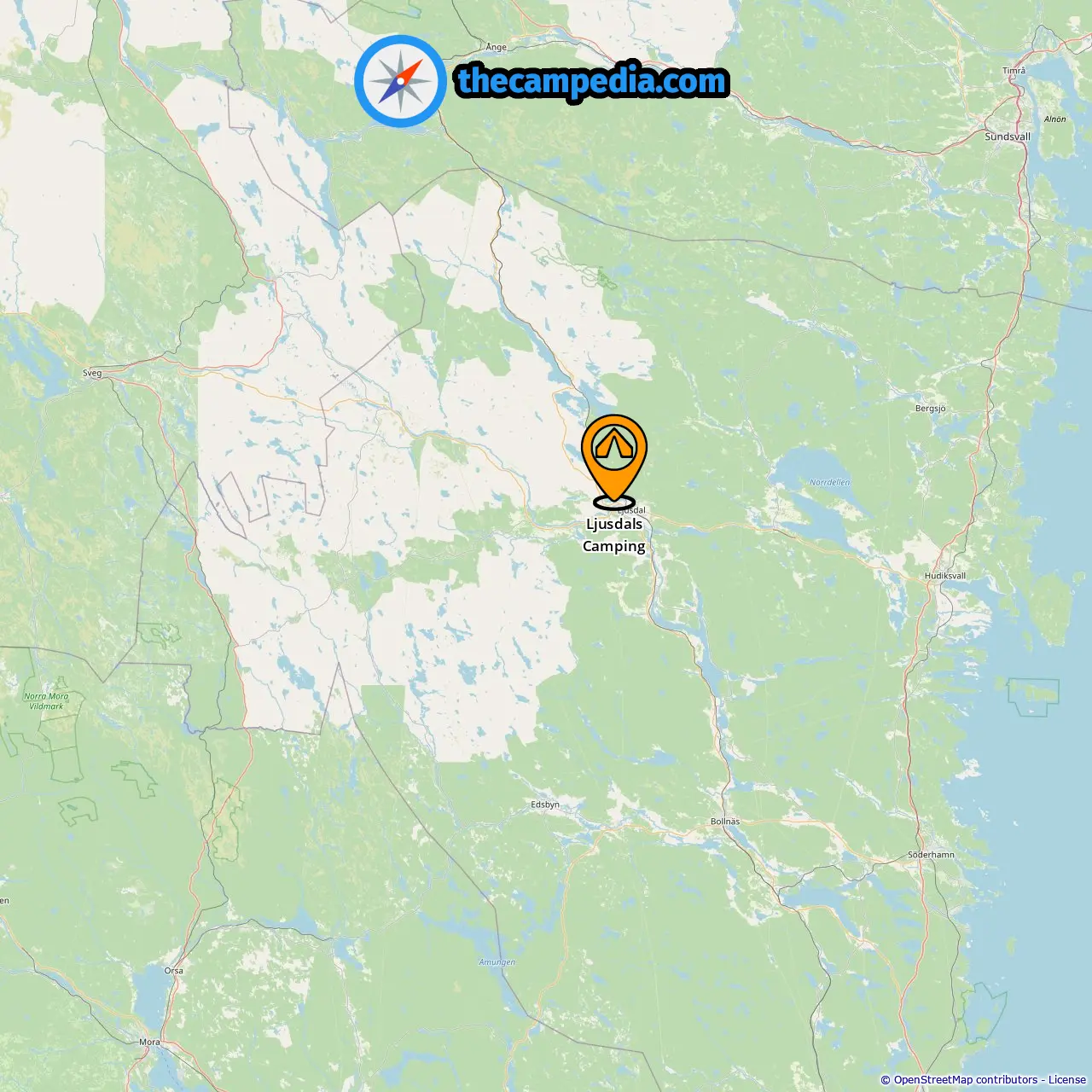 Location of Ljusdals Camping