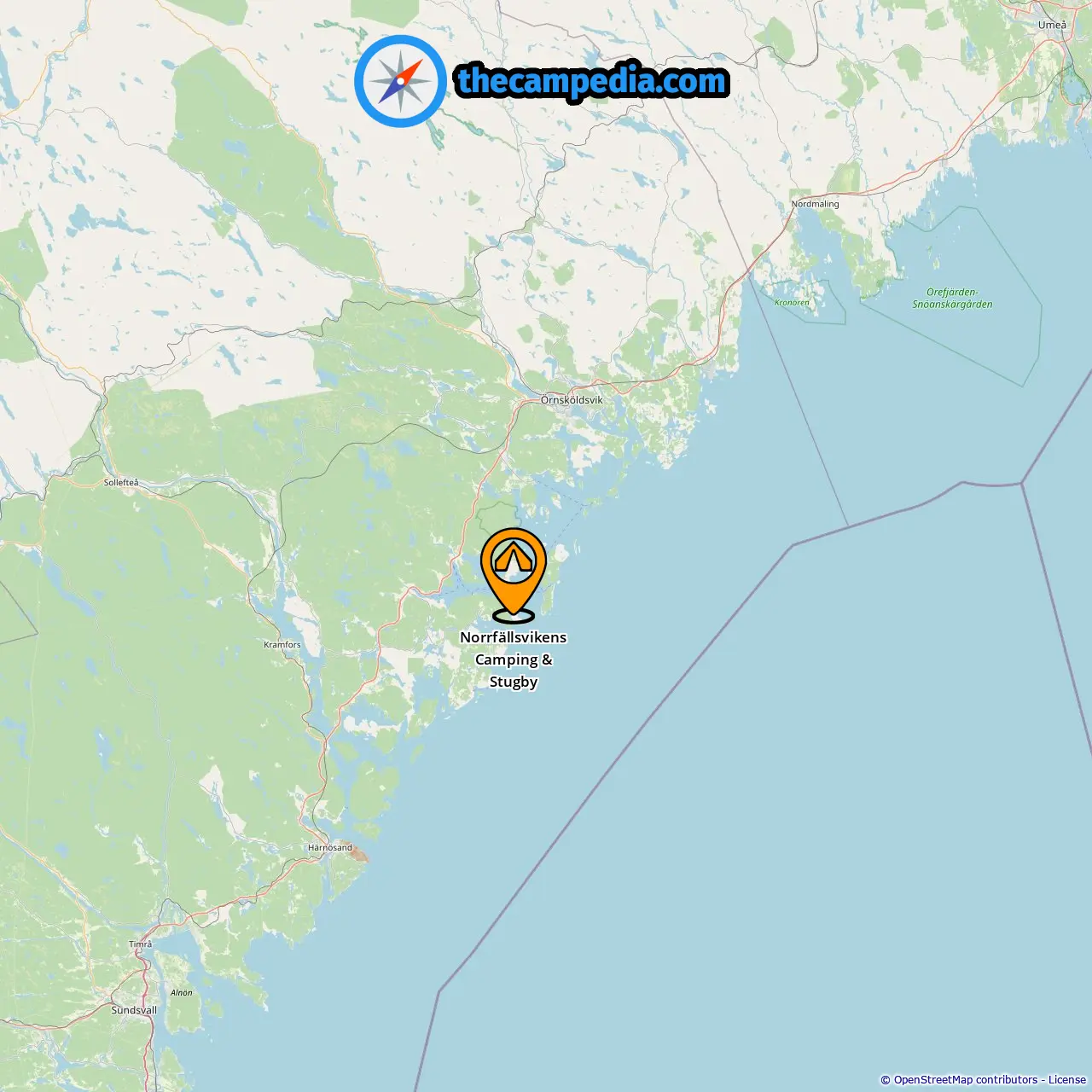 Location of Norrfällsvikens Camping & Stugby