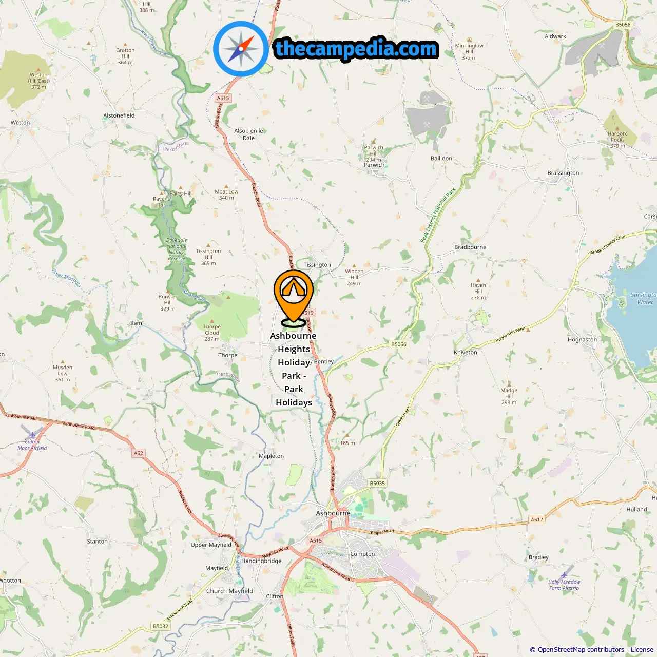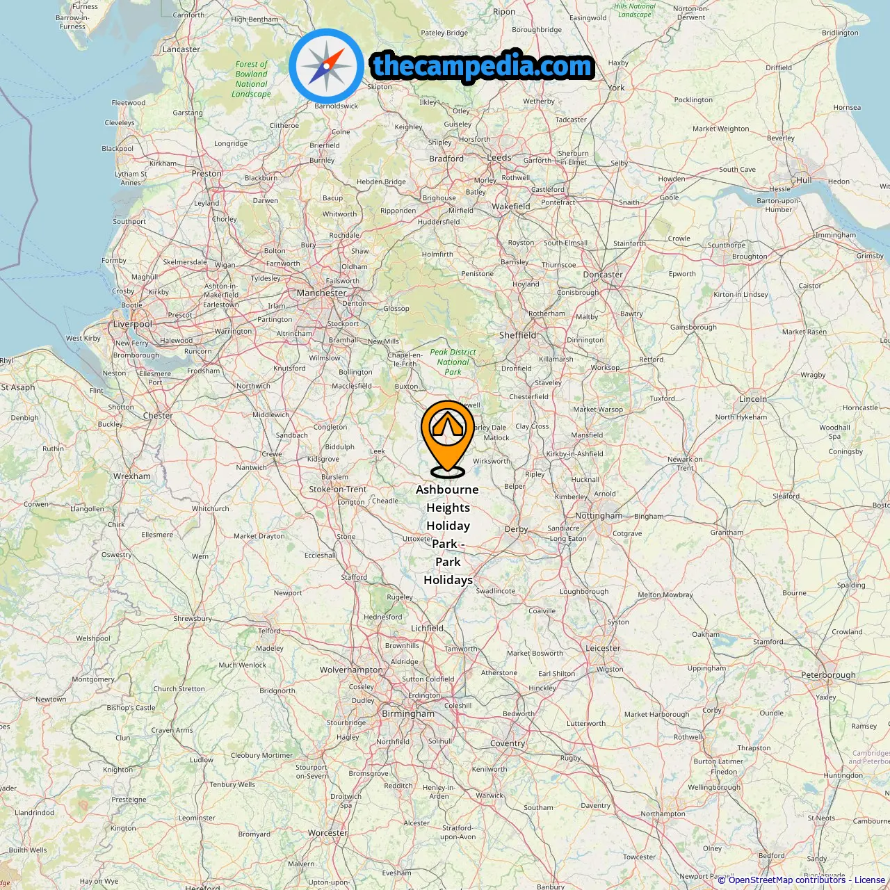 Location of Ashbourne Heights Holiday Park - Park Holidays