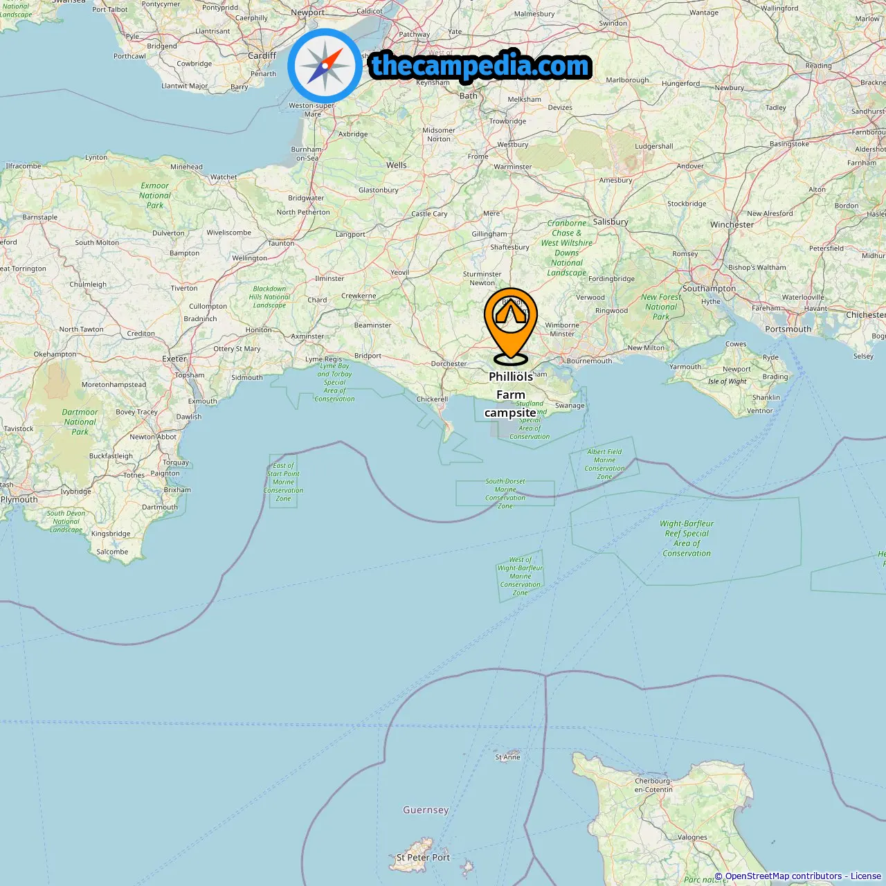 Location of Philliols Farm campsite