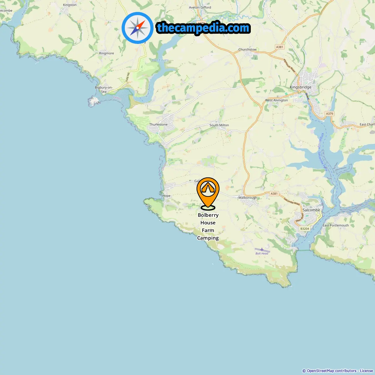 Location of Bolberry House Farm Camping