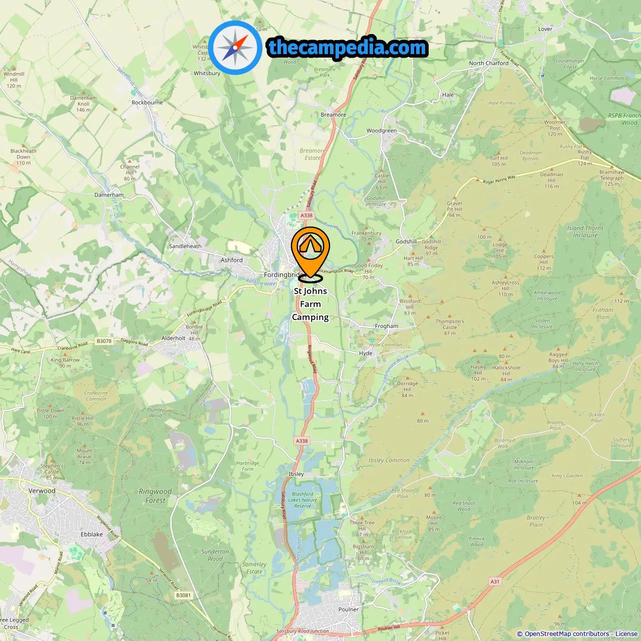 Distance from the campsite to Fordingbridge: 0.35 mi