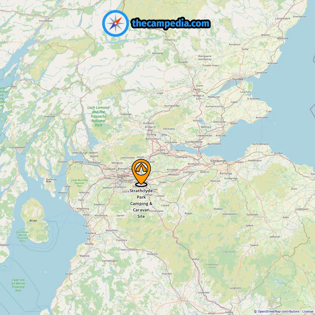 Location of Strathclyde Park Camping & Caravan Site
