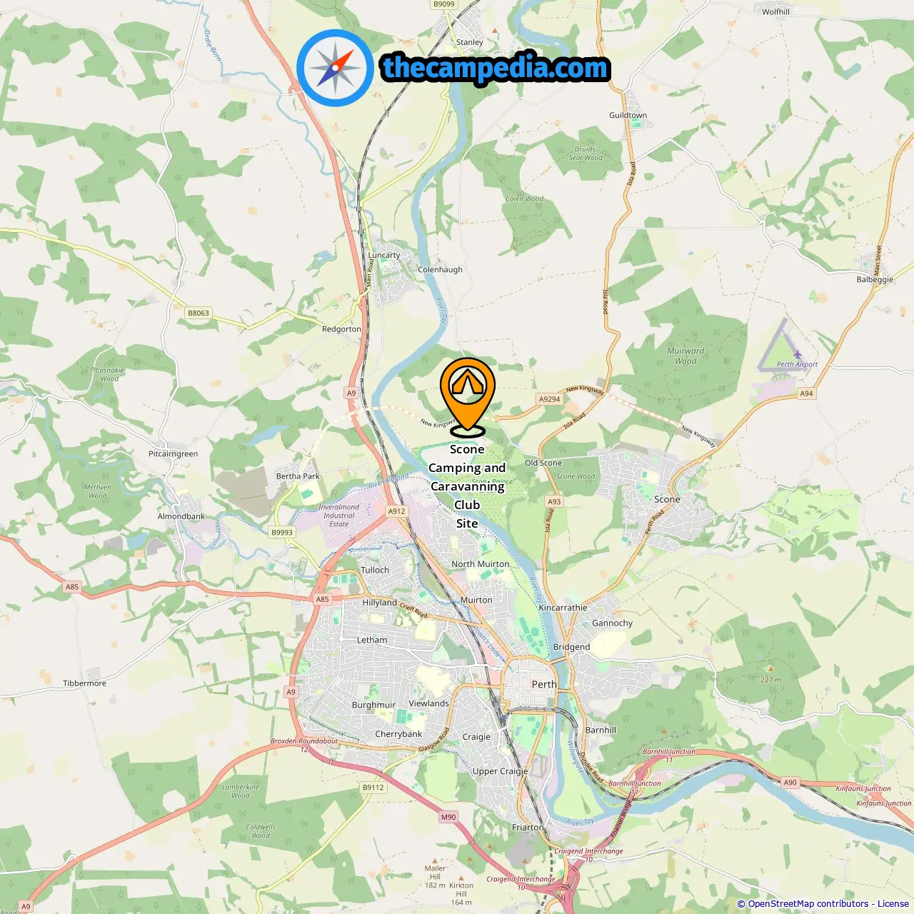 Location of Scone Camping and Caravanning Club Site