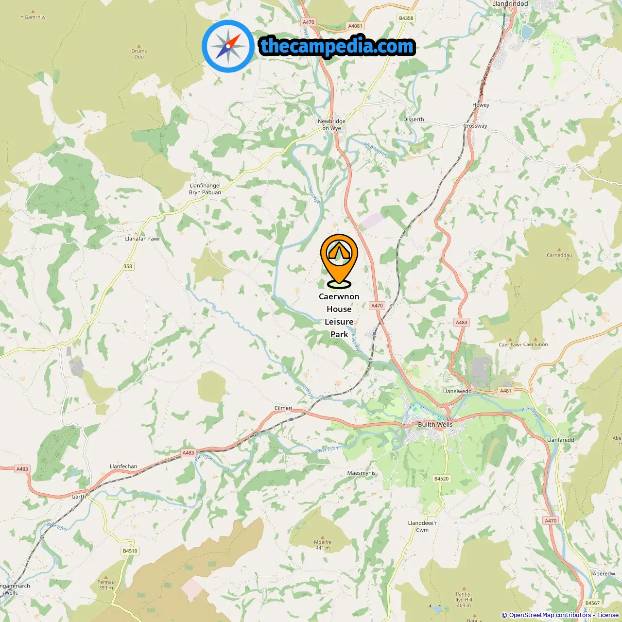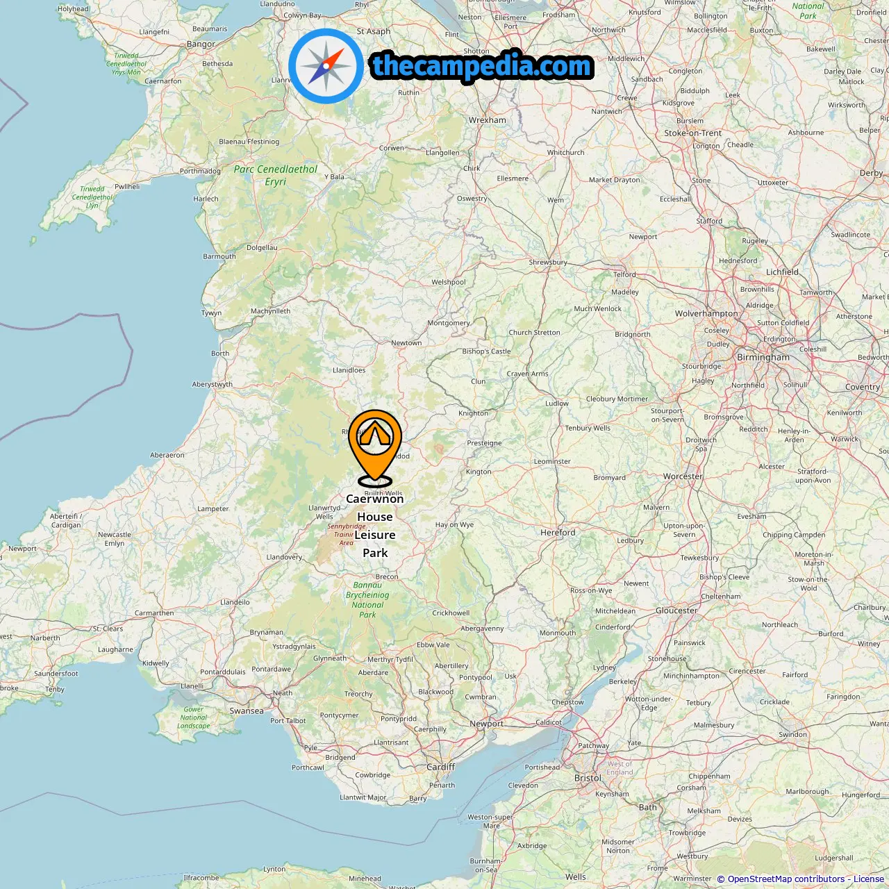 Location of Caerwnon House Leisure Park