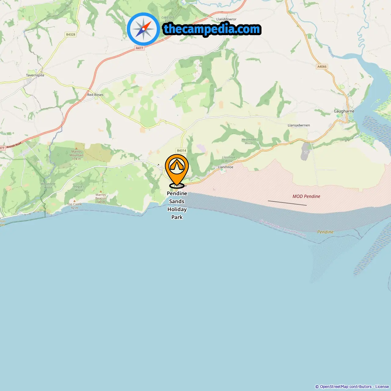 Location of Pendine Sands Holiday Park