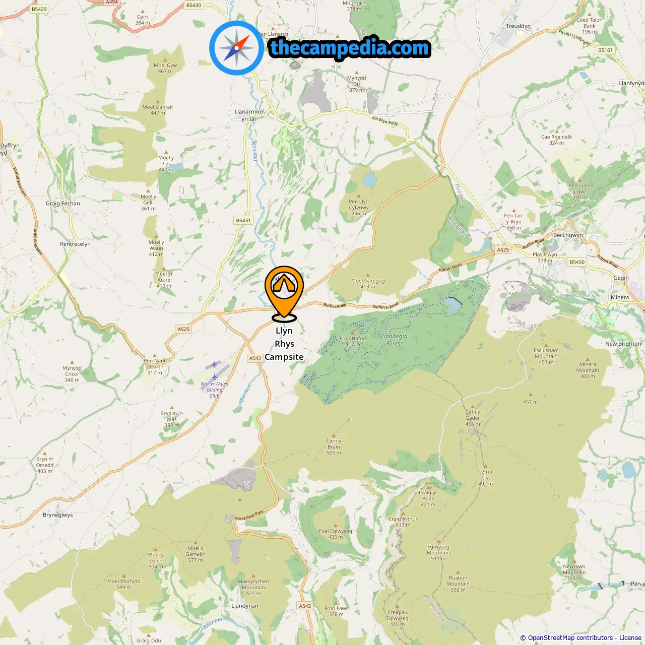 Distance from the campsite to Llandegla: 0.45 mi