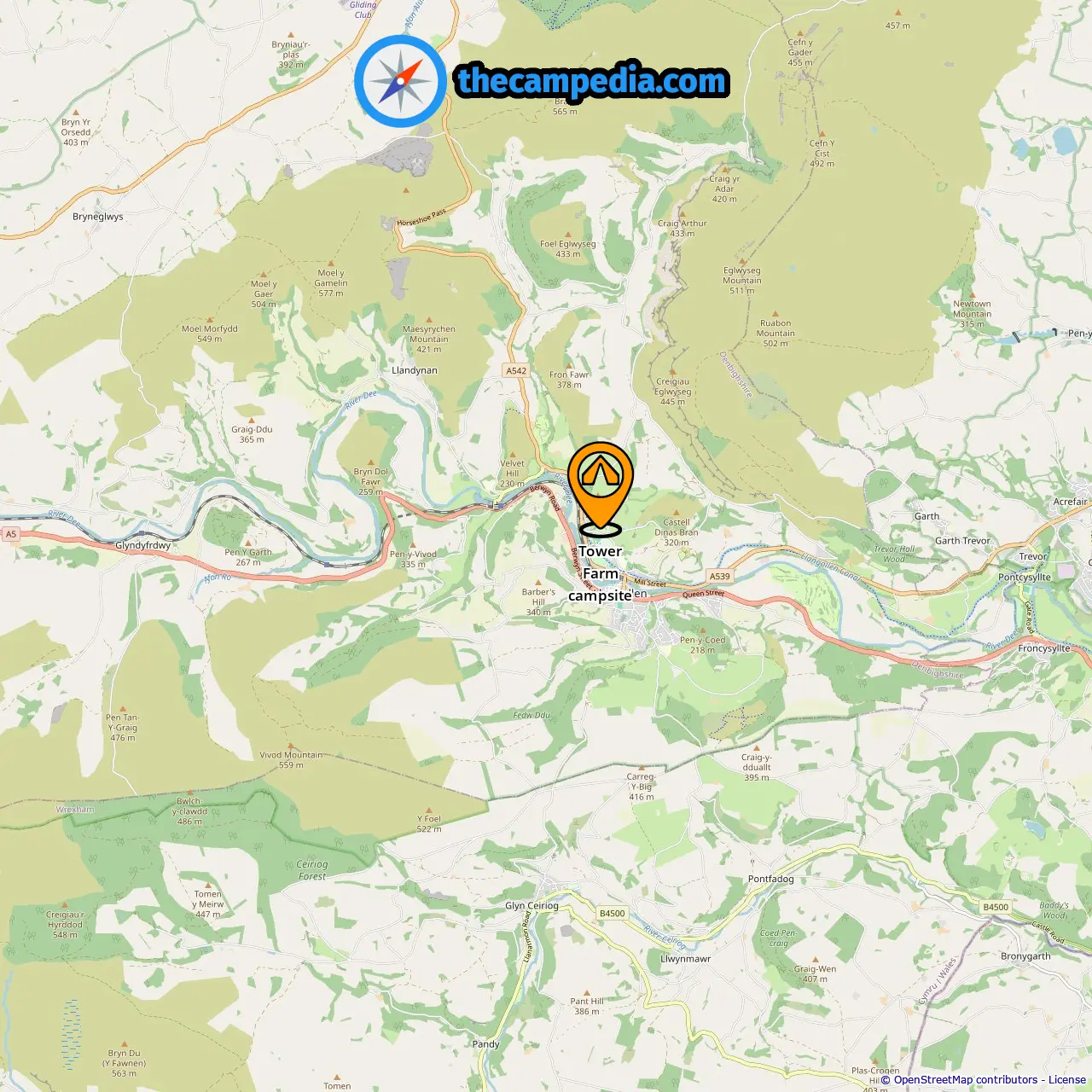 Campsites in Corwen (10.12 mi from Llangollen)
