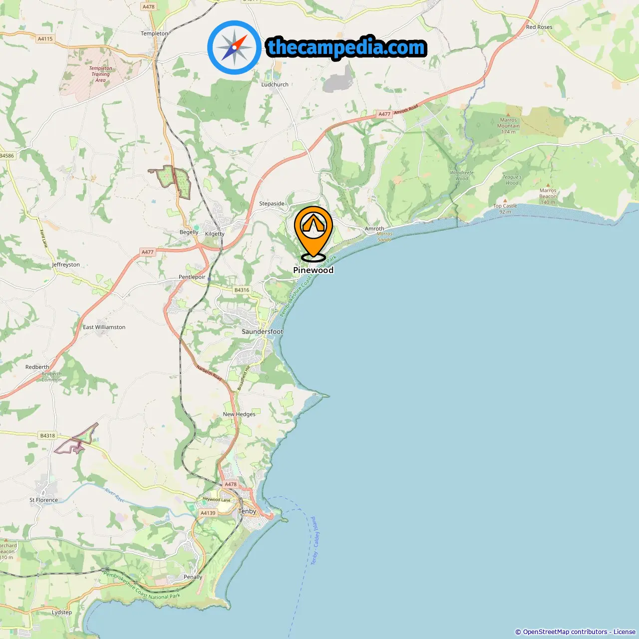 Distance from the campsite to Saundersfoot: 1.99 mi