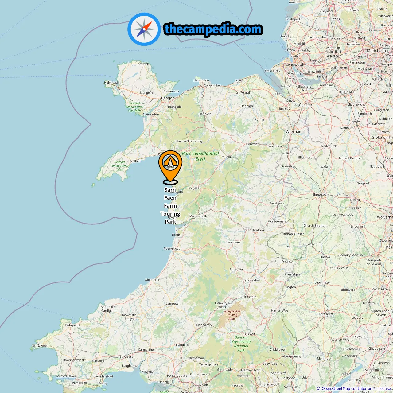 Location of Sarn Faen Farm Touring Park