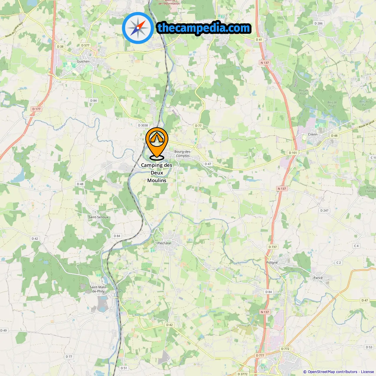Campgrounds in Pont-Réan (7.2 mi from Bourg-Des-Comptes)