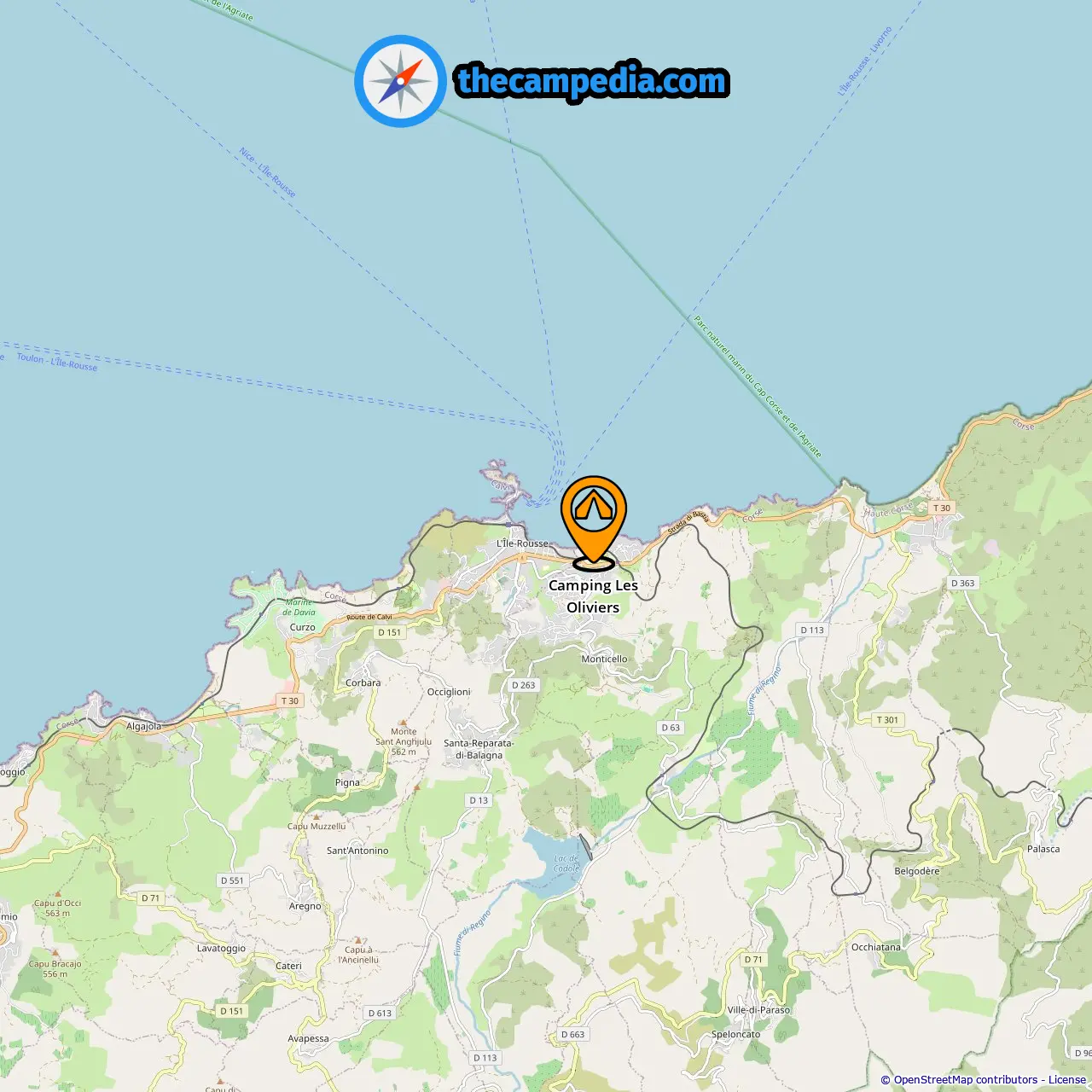 Campgrounds in Algajola (7.75 mi from Monticello)