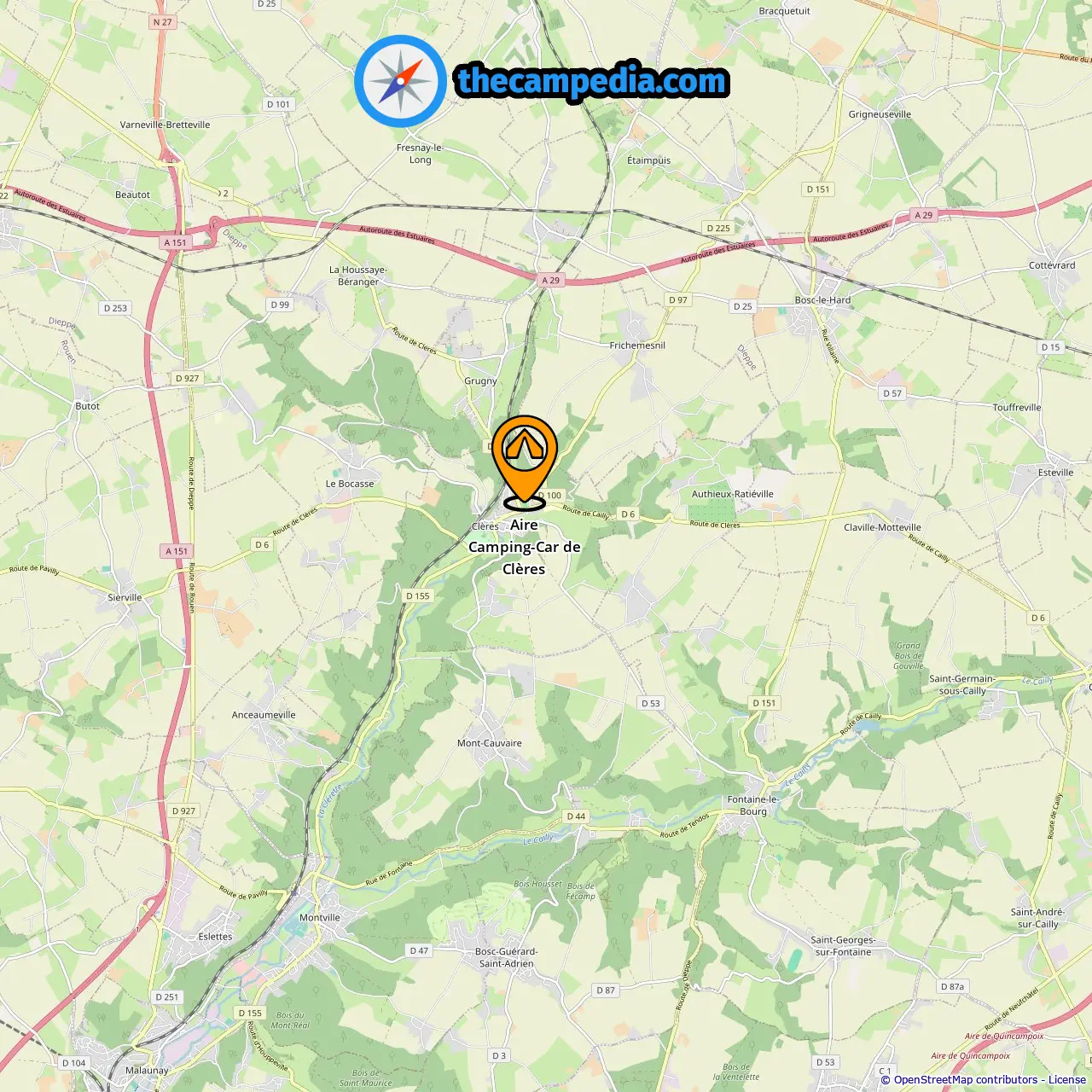 Location of Aire Camping-Car de Clères