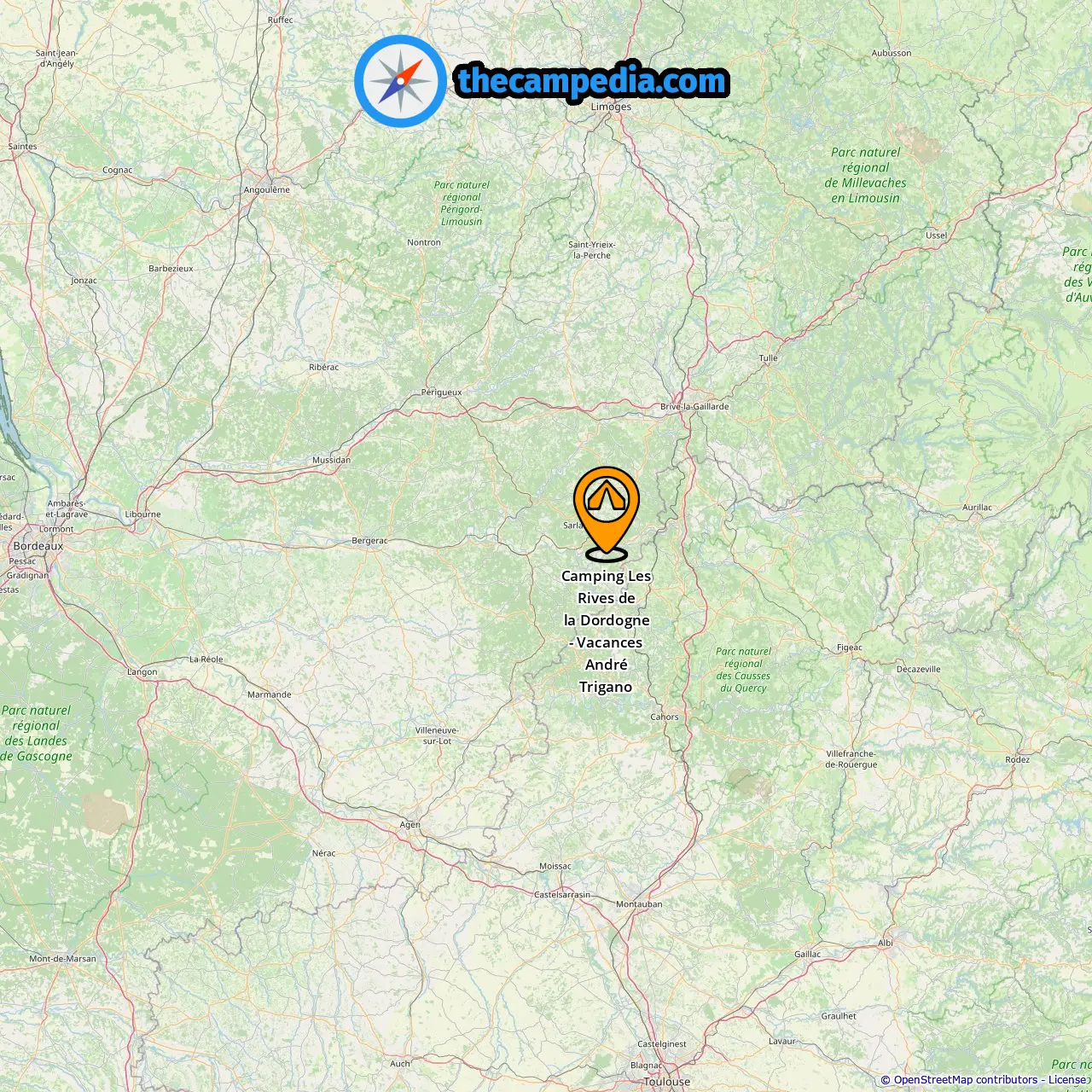 Location of Camping Les Rives de la Dordogne - Vacances André Trigano
