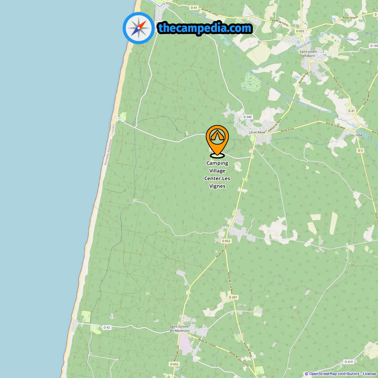 Campgrounds in Saint-Julien-En-Born (3.77 mi from Pétrocq)