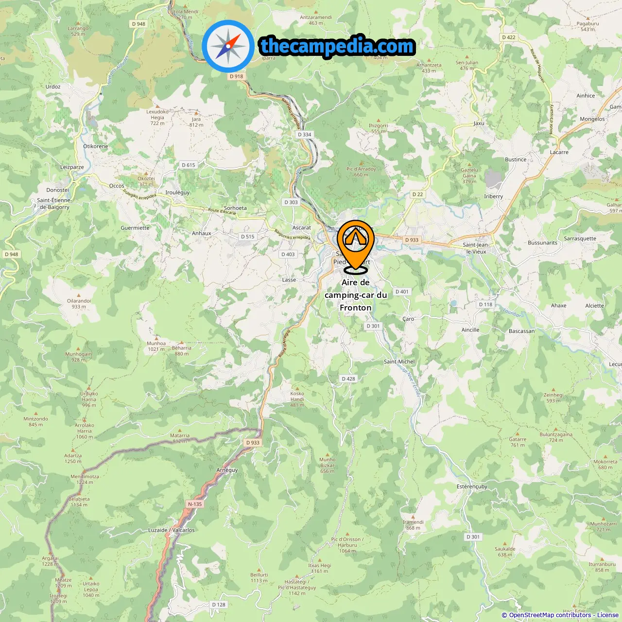Distance from the campground to Saint-Jean-Pied-De-Port: 0.99 mi
