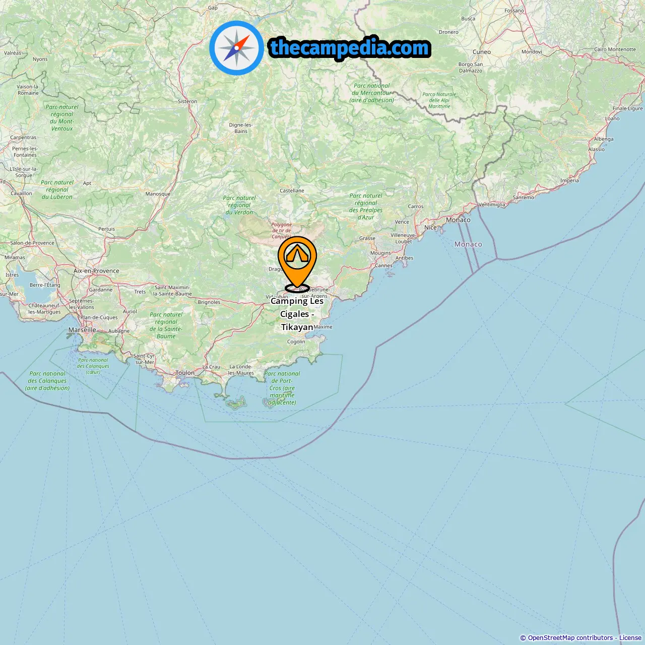 Location of Camping Les Cigales - Tikayan