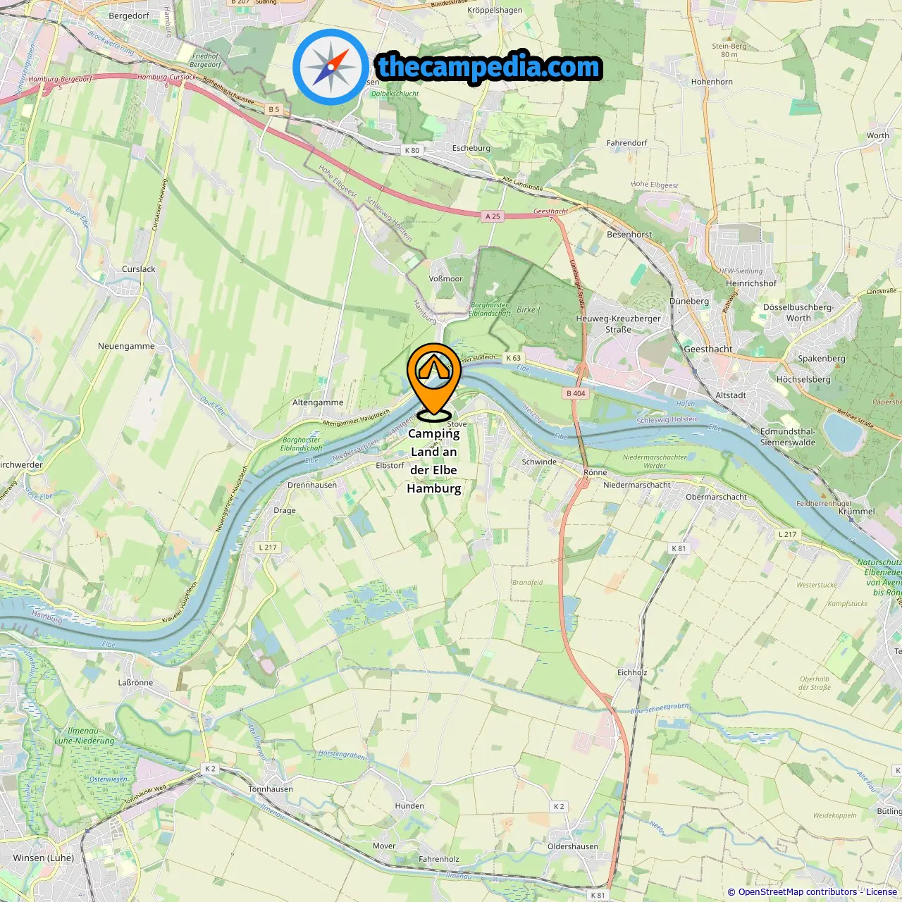 Location of Camping Land an der Elbe Hamburg