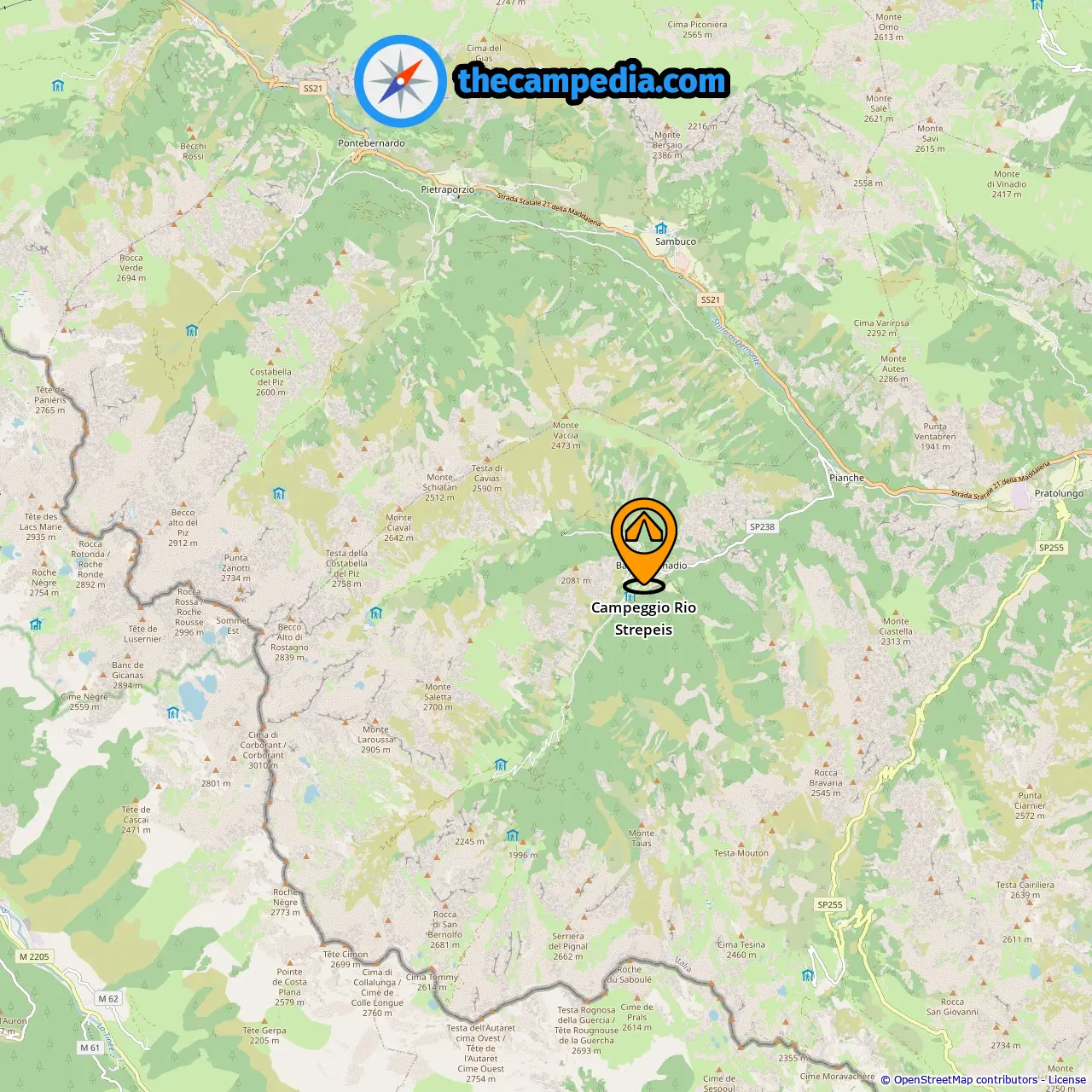 Location of Campeggio Rio Strepeis