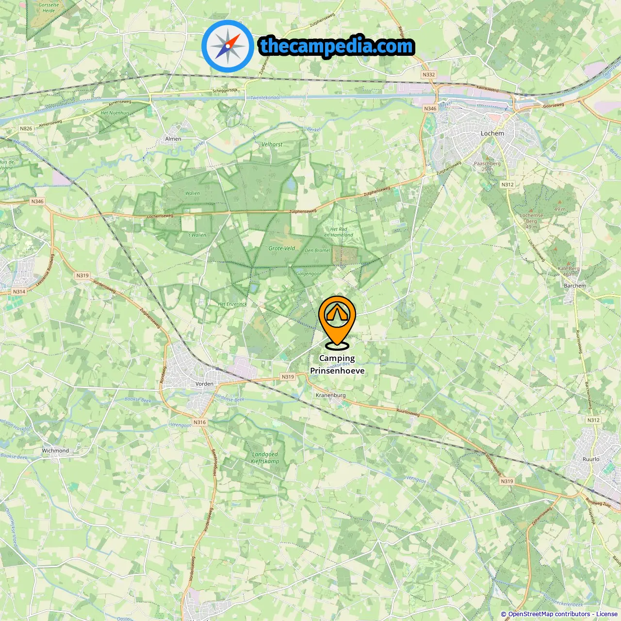 Location of Camping Prinsenhoeve