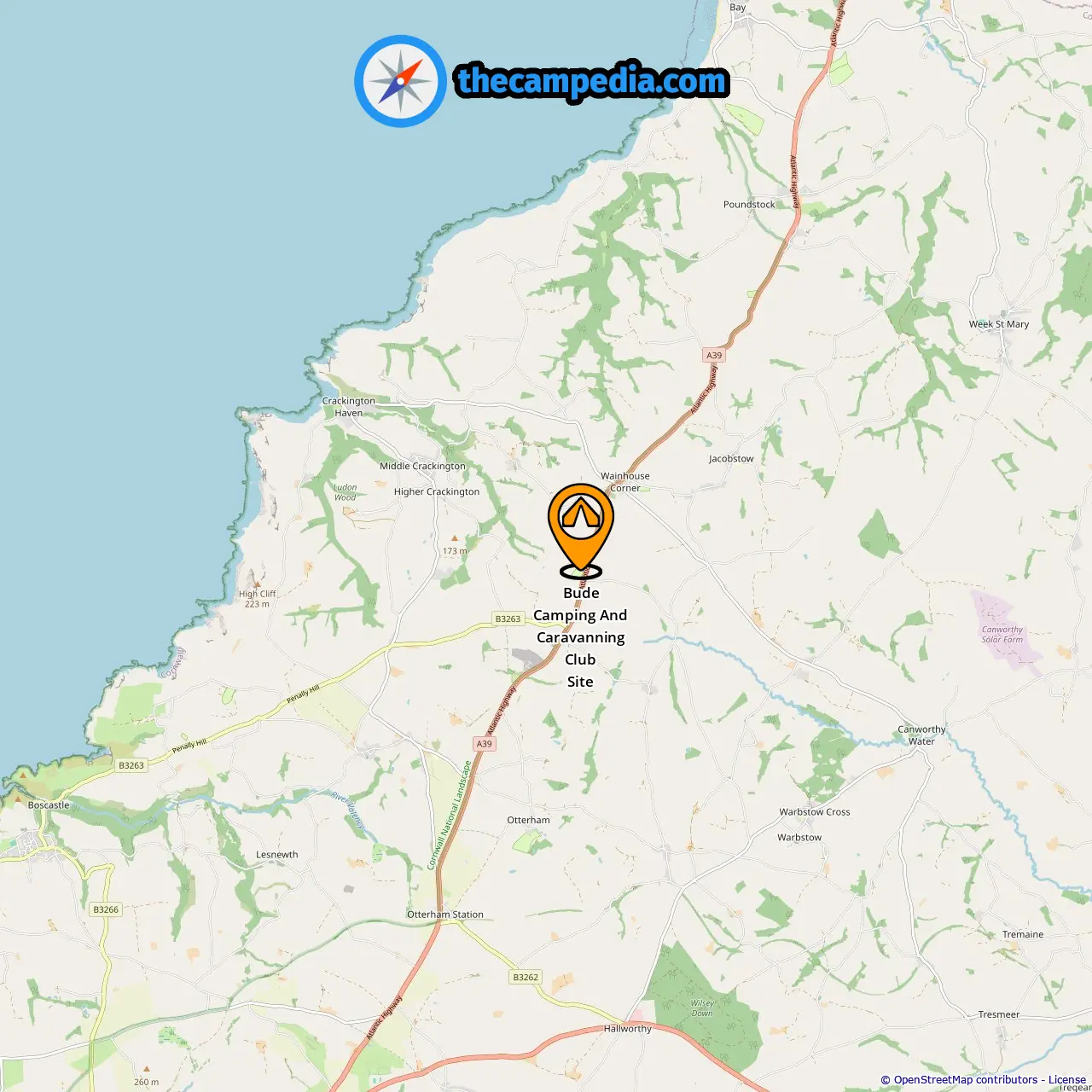 Location of Bude Camping And Caravanning Club Site