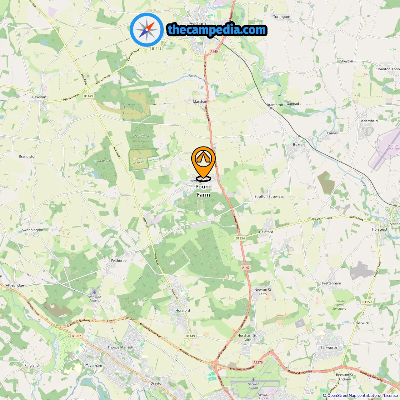 Distance from the campground to Hevingham: 0.03 mi