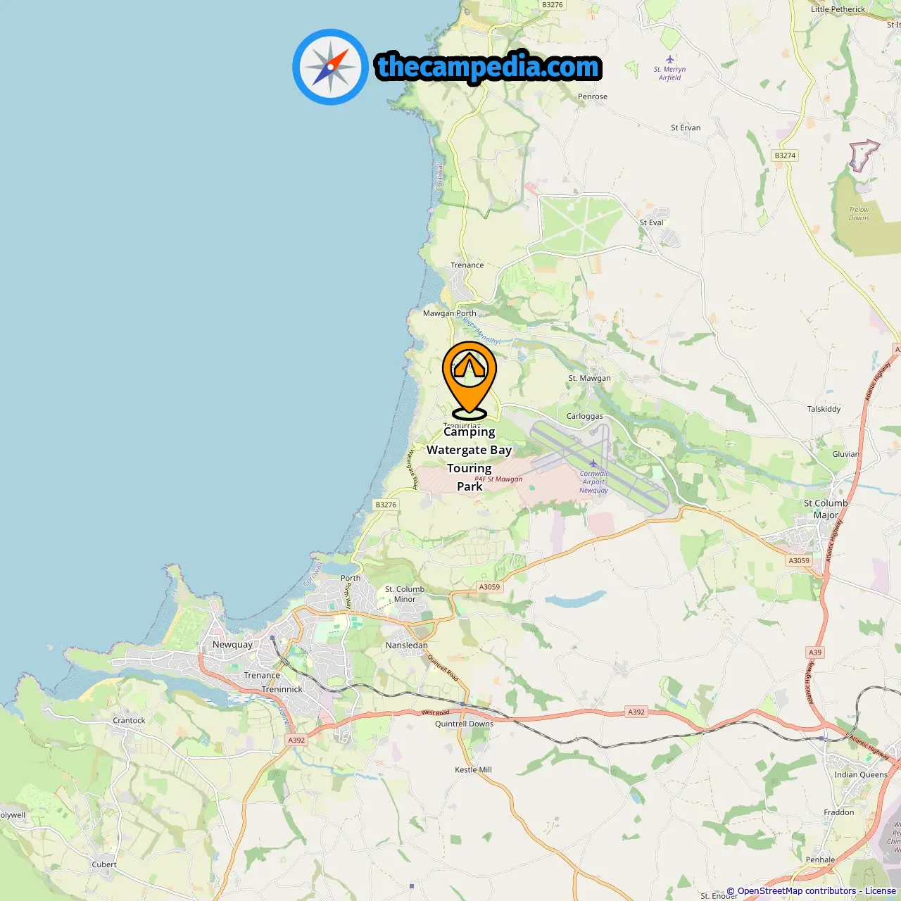 Location of Camping Watergate Bay Touring Park