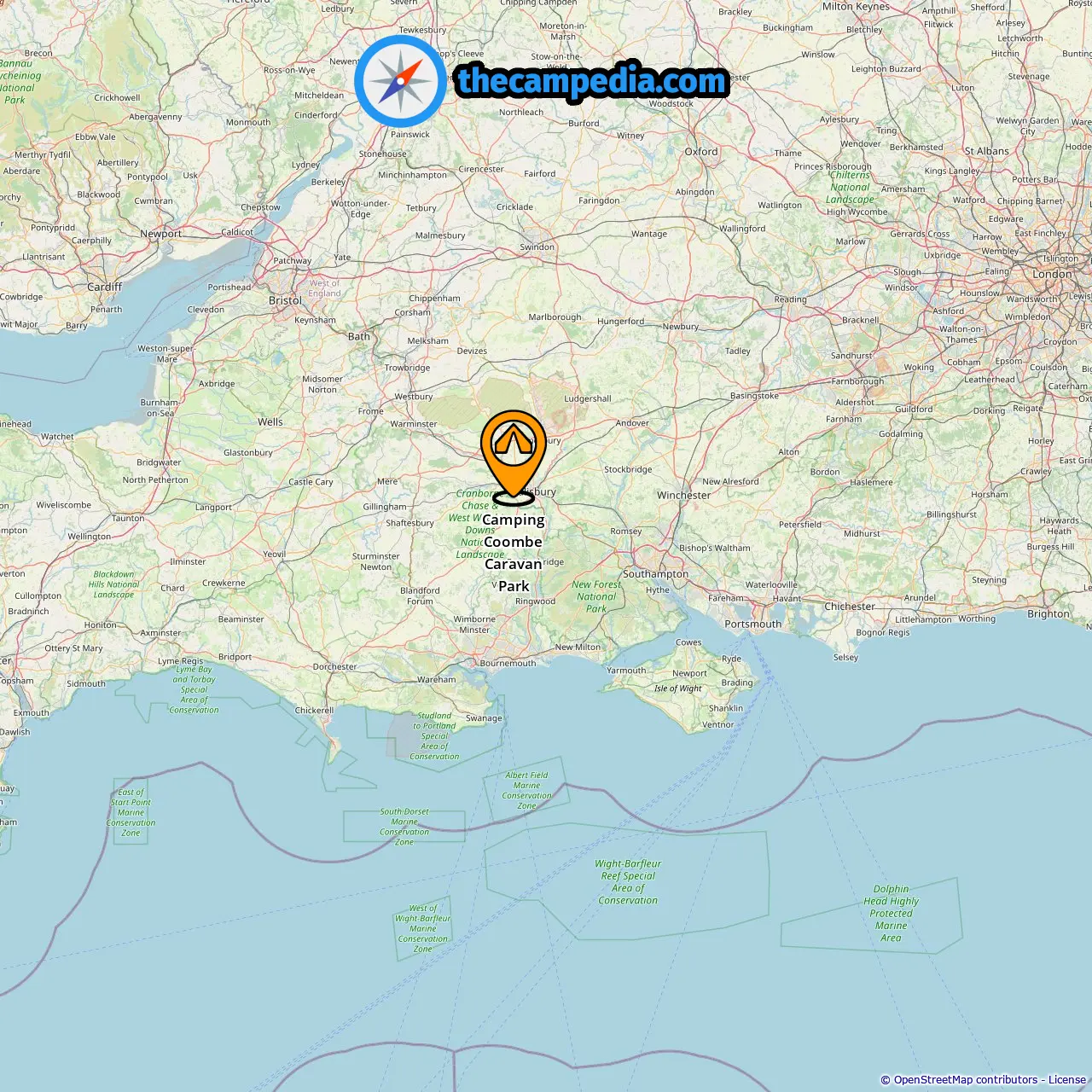 Location of Camping Coombe Caravan Park