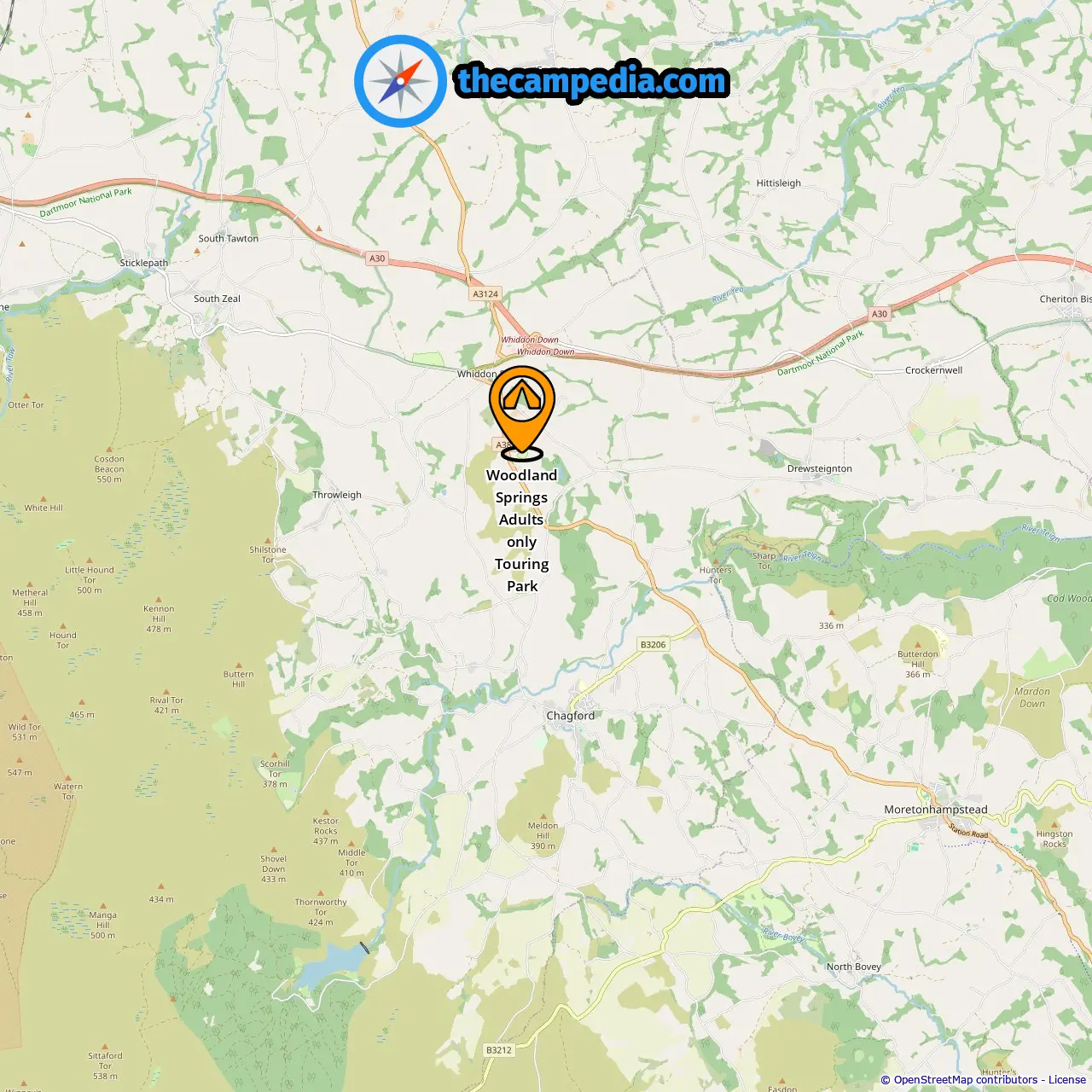 Campgrounds in Moretonhampstead (6.56 mi from Whiddon Down)