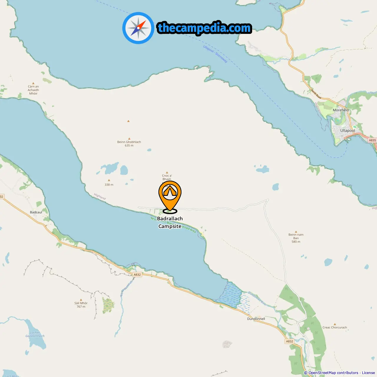 Location of Badrallach Campsite