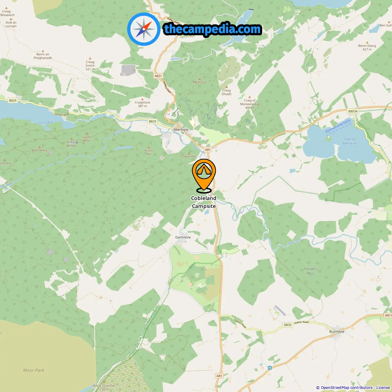 Campgrounds in Aberfoyle (3.38 mi from Gartmore)