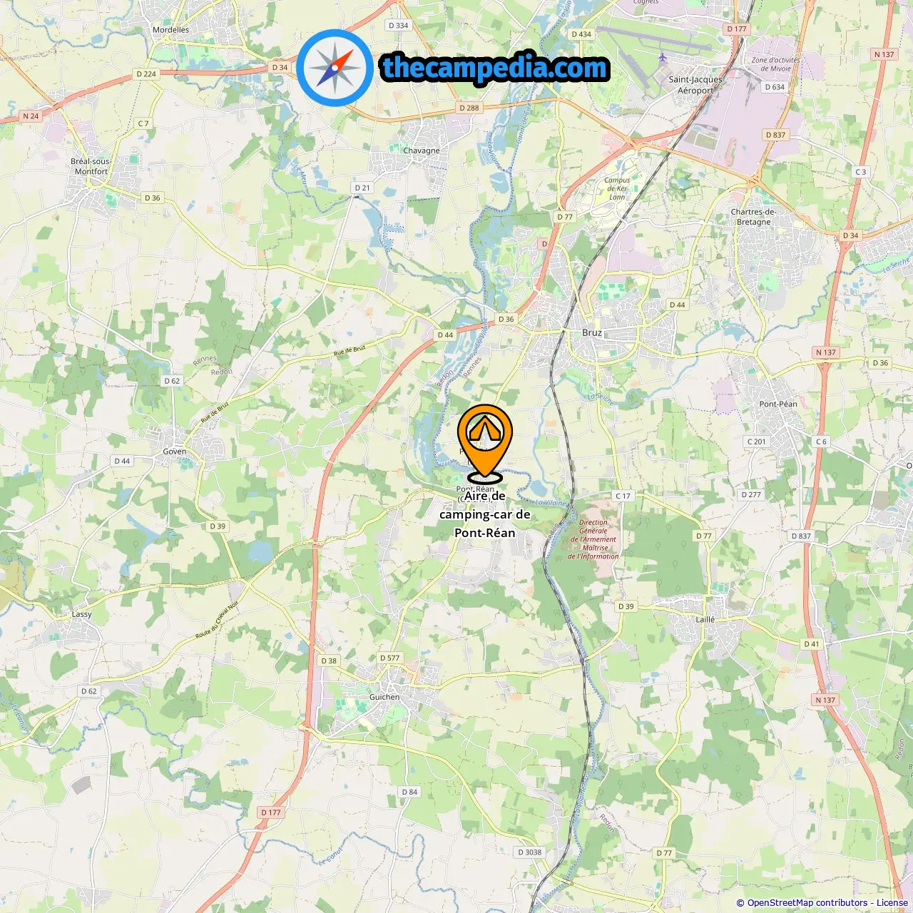 Aire de camping-car de Pont-Réan, Pont-Réan, Francia