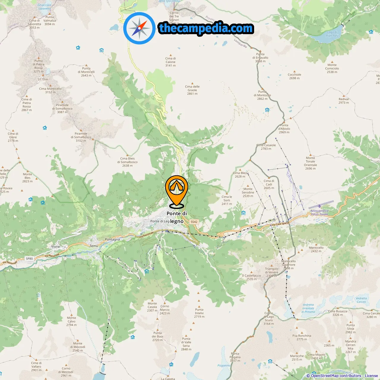 Distancia desde el camping hasta Ponte Di Legno: 0.72 mi