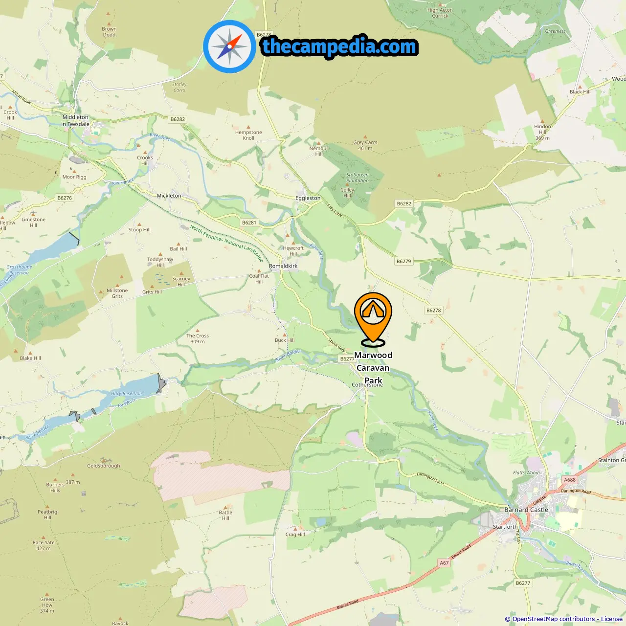 Campings en Bishop Auckland (13.94 mi de Barnard Castle)