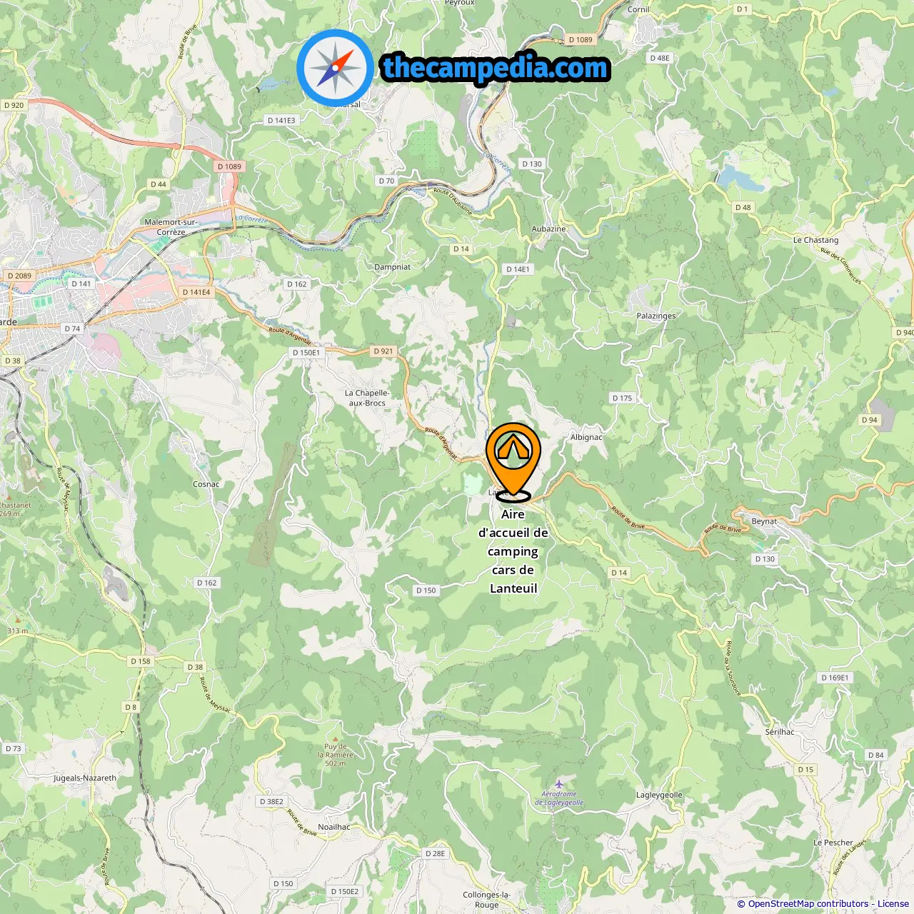 Ubicación de Aire d'accueil de camping cars de Lanteuil