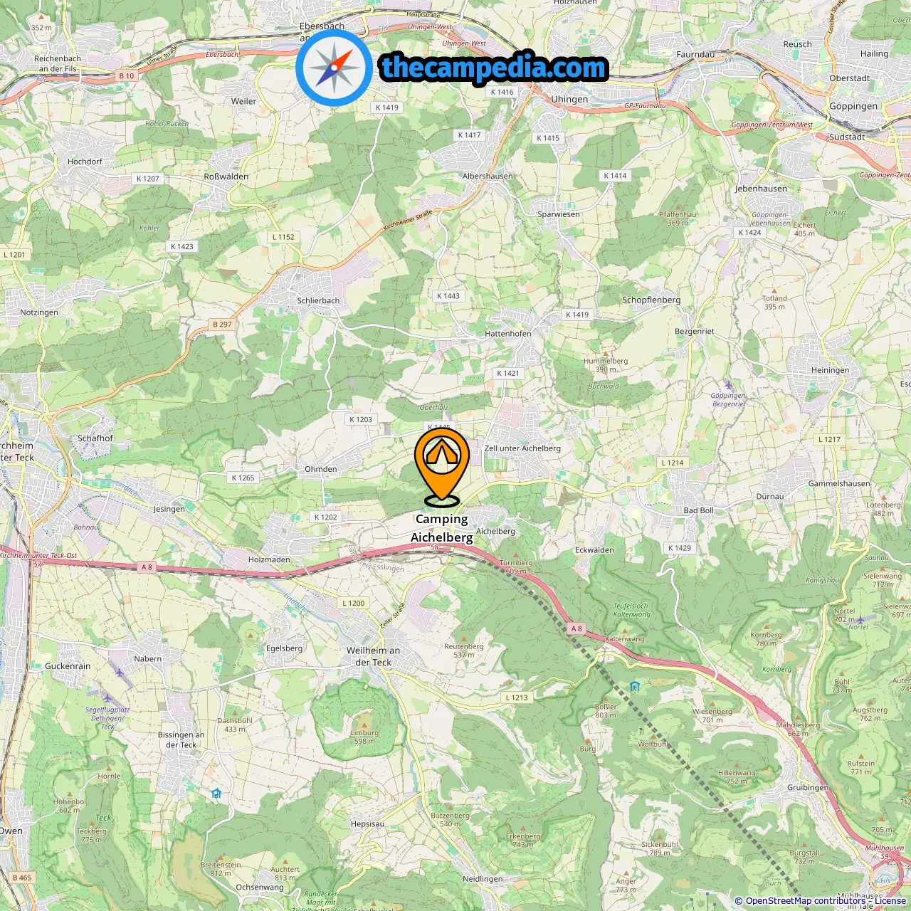 Distance du camping à Aichelberg: 0.76 mi