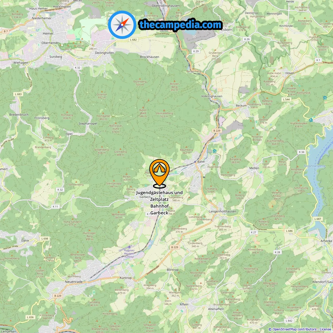 Emplacement de Jugendgästehaus und Zeltplatz Bahnhof Garbeck