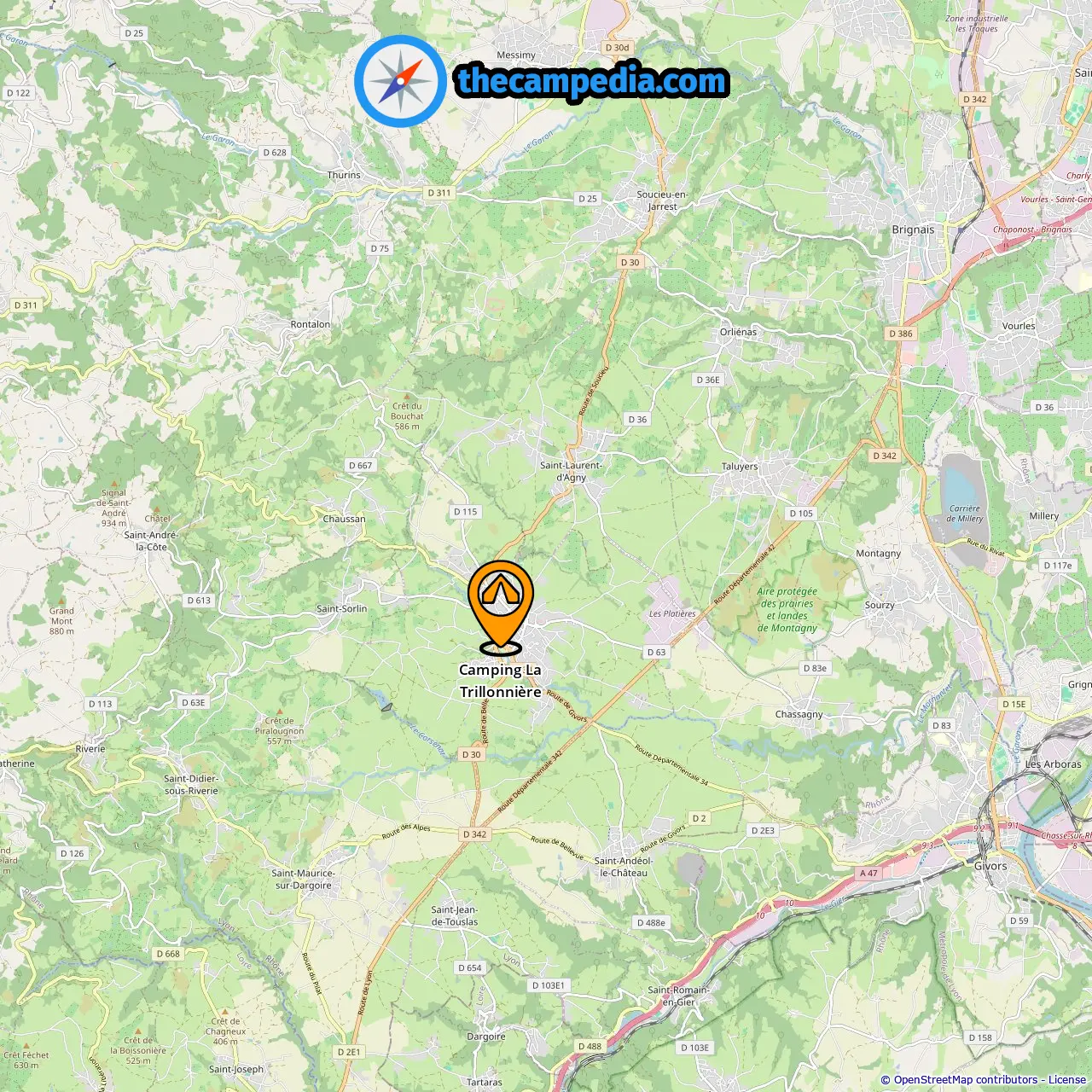 Campings à Saint-Genis-Laval (10.07 mi de Mornant)