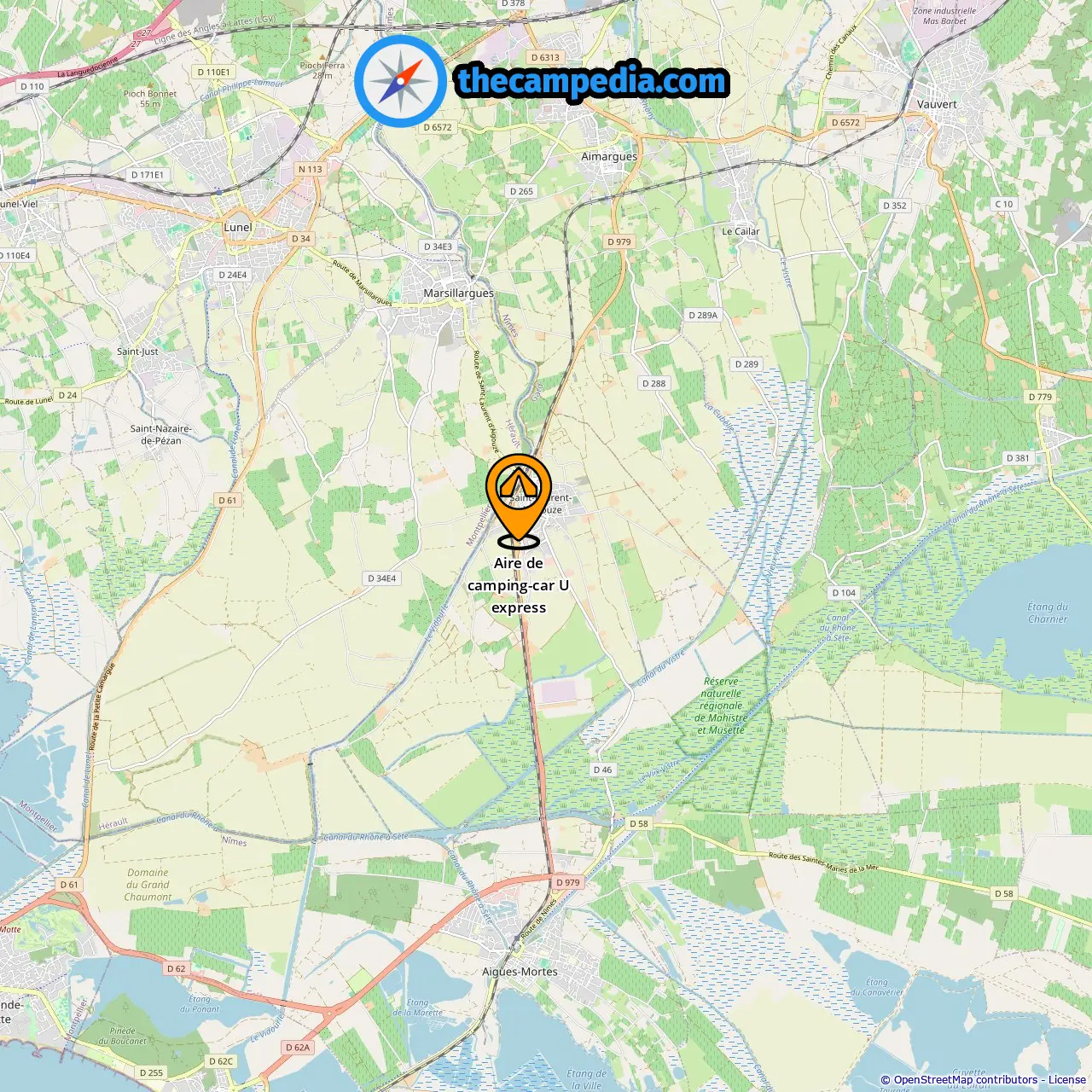 Aire de camping-car U express, Saint-Laurent-D'Aigouze, France