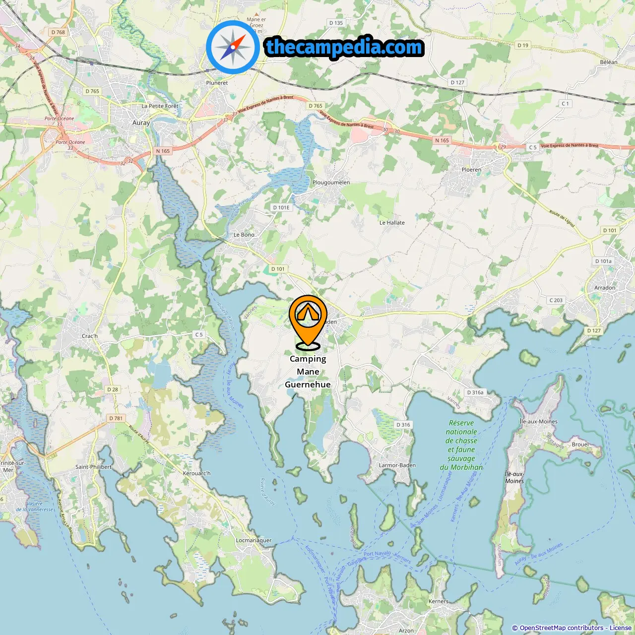 Camping Mane Guernehue, Baden, Francia