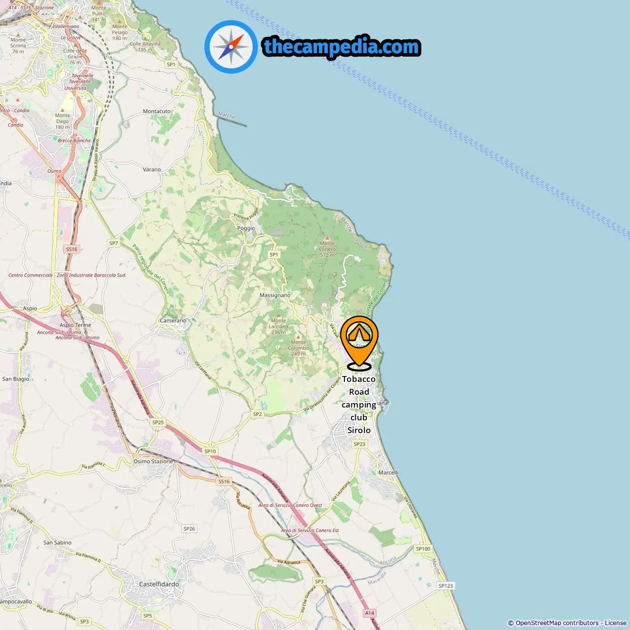 Posizione di Tobacco Road camping club Sirolo
