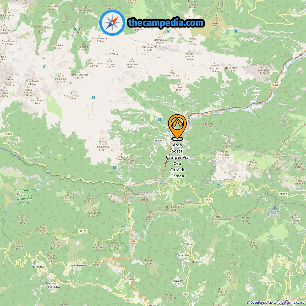 Posizione di Area Sosta Camper Via Orti Città di Ormea