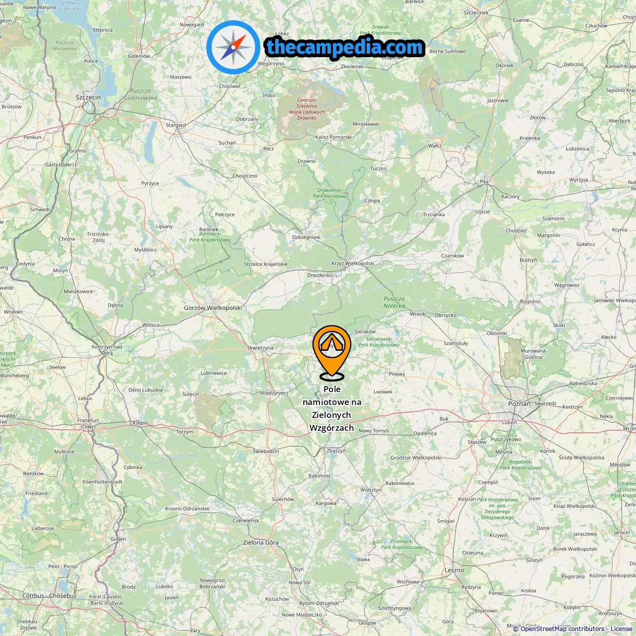 Pole namiotowe na Zielonych Wzgórzach, Łowyń, Polonia
